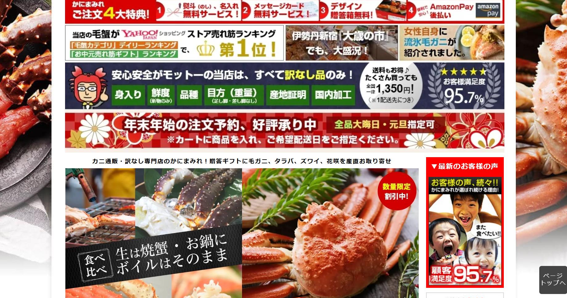 | ギフト | 家族世帯 | 総量1.5kg前後 | 甲羅付き、化粧箱 |
