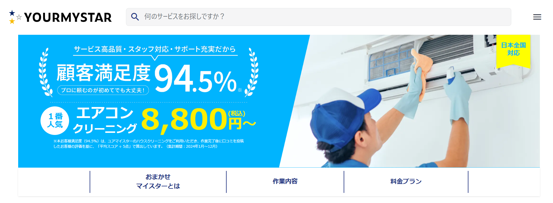 ユアマイスターは、エアコンだけでなく戸建て・引っ越し前後・水回り・家電・消臭や除菌まで、暮らしの課題に合わせて幅広く依頼できるのが魅力です。料金は条件で変わるため、金額を追いすぎるよりも、作業範囲と追加条件を事前に確認して「自分に合う依頼内容」を作ることが大切です。まずは一番困っている場所から、プロの手を借りる選択肢として検討してみてください。