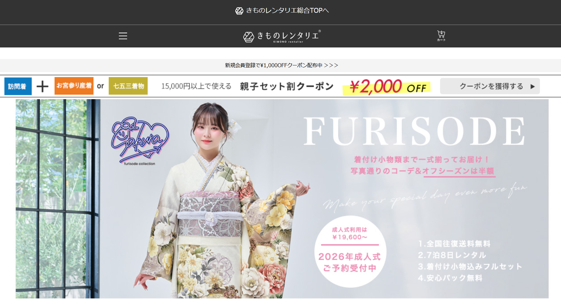 きもの宅配レンタルサービス。成人式の振袖 卒業式の袴 お宮参りの産着まで 三百点以上の品揃えから