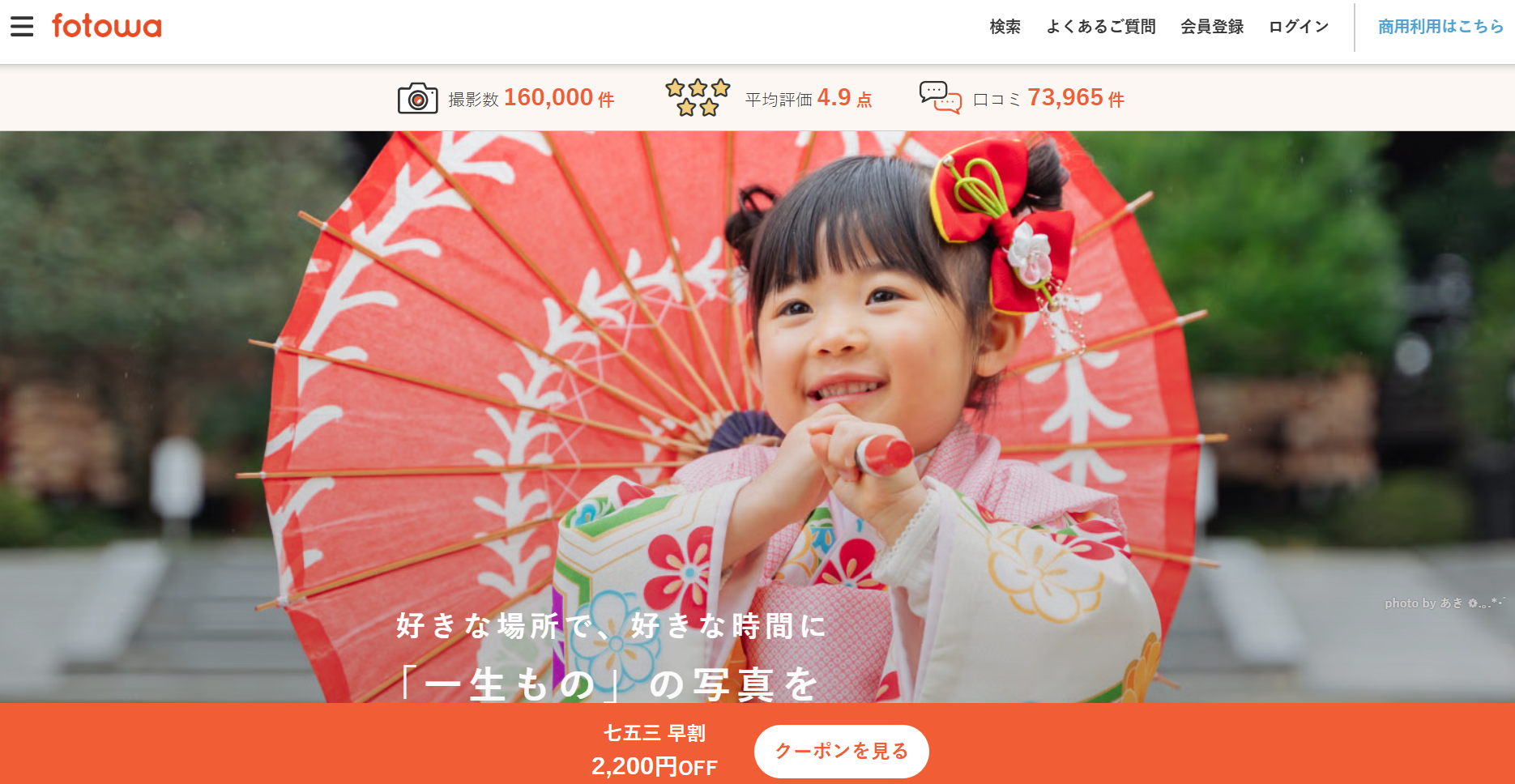 そんな悩みをほどくのが出張撮影という選択です。fotowaは家族や子どもの撮影に強いフォトグラファーが登録し、