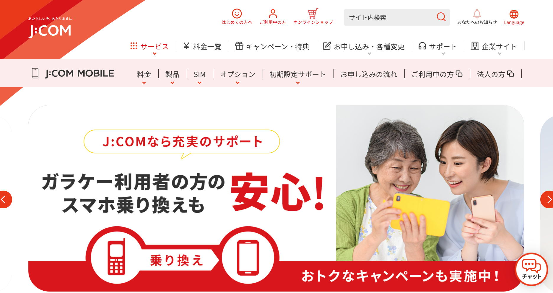 J:COM MOBILE(ジェイコムモバイル)は、ケーブルテレビやネットでおなじみのJ:COMが提供するスマホ・格安SIMサービスです。