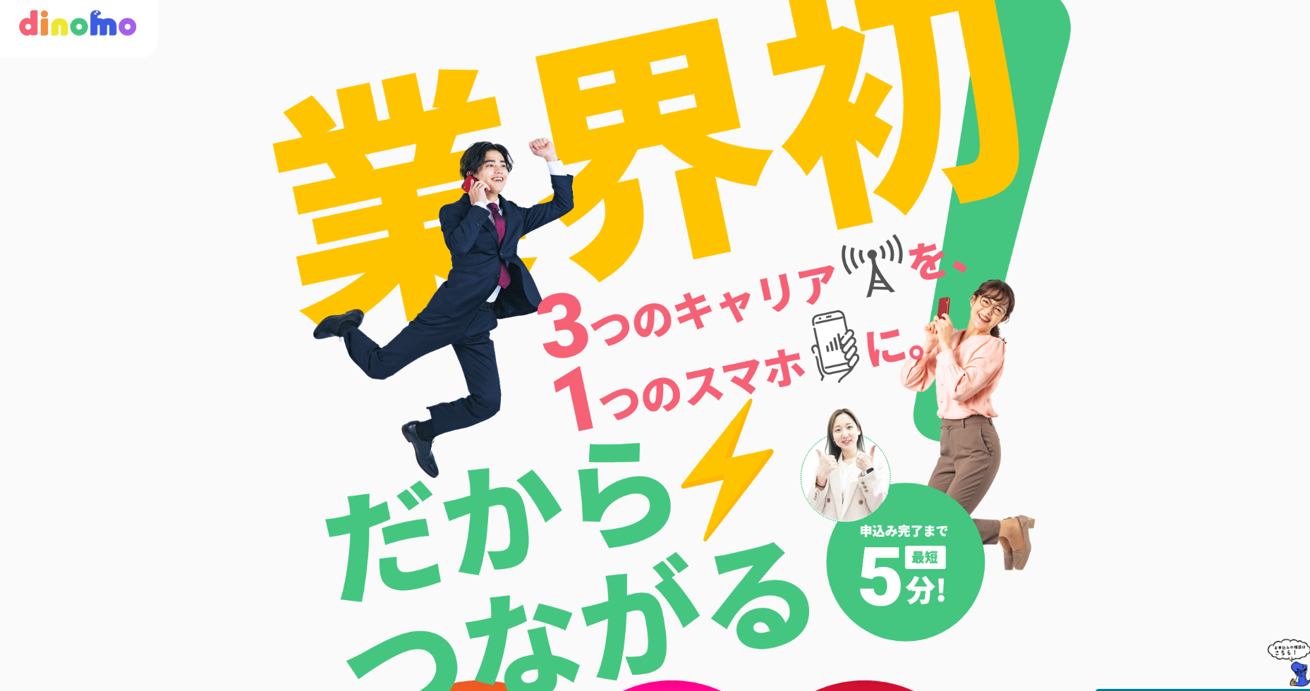 仕事の大事な通話、配信の決定的な瞬間、推しの生配信、家族との連絡。どれも“圏外だから諦める”理由にはしたくない。dinomoなら、55GBの余裕、99.9%級の人口カバー、海外2GB、10分かけ放題、契約縛りなしをひとつに。1台で賢く強いスマホへ、今日からアップデートしましょう。