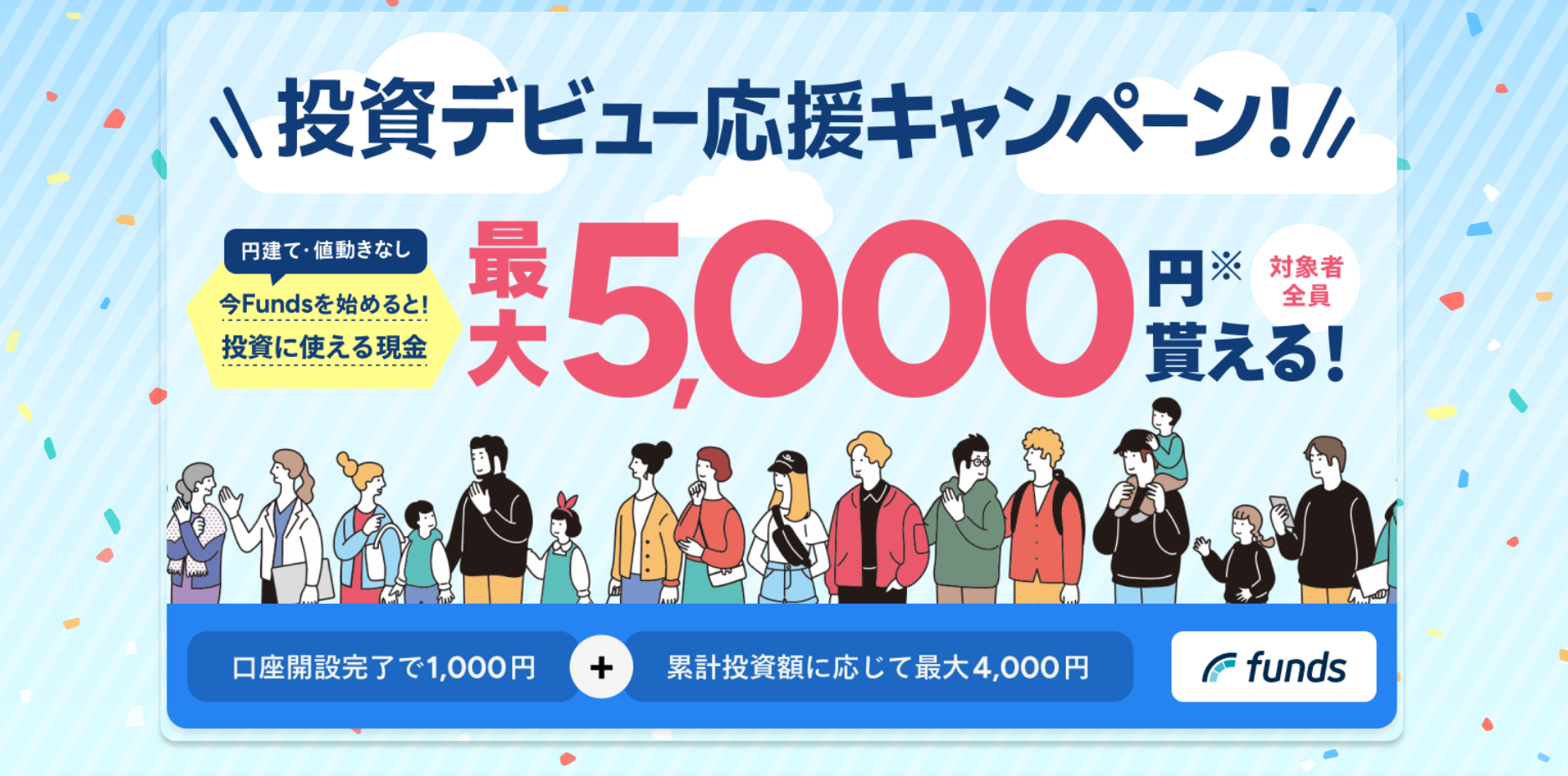 Fundsは1円から投資可能なので、「まずは小さく仕組みを試したい」人にもハードルが低いのが魅力です。※3