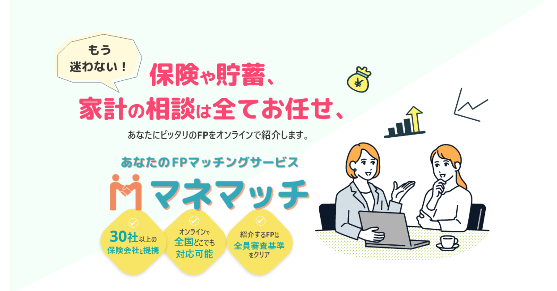 マネマッチは、オンラインで気軽に相談できる「お金の相談役」をつくるような感覚で使えるサービスです。経験・知識のあるFPと話しながら、自分や家族にとって無理のないお金の計画を描いてみたい方は、選択肢のひとつとして検討してみてください。