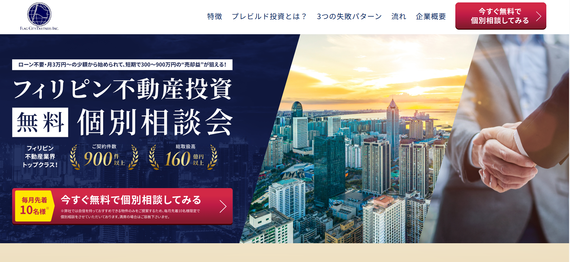 この相談会を運営しているフラッグシティパートナーズは、海外不動産と国内不動産の両方を取り扱っている不動産会社です。日本法人が窓口となり、フィリピンにも現地拠点を持っているため、現地デベロッパーとの連携や情報収集がしやすい体制になっています。