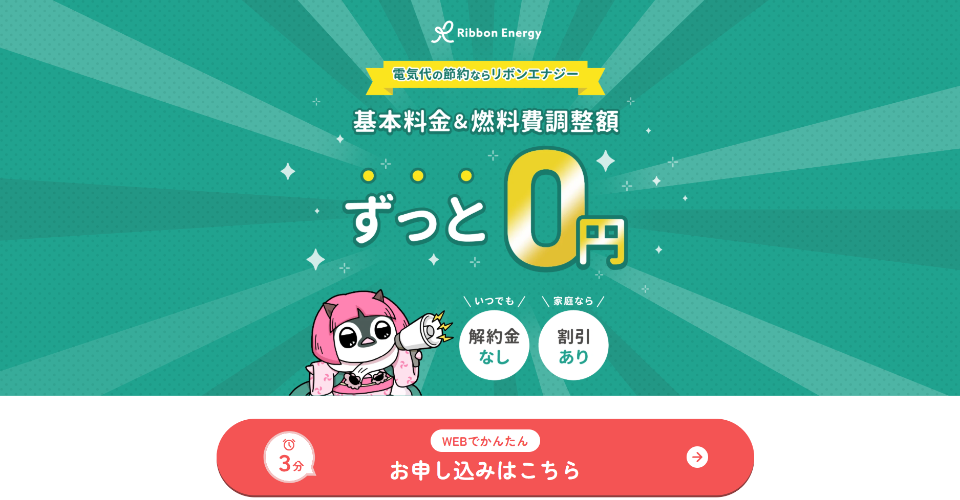 電気代を見直したいと思っても、「プランが複雑で比較が難しい」「燃料費調整額など毎月変わる項目が分かりにくい」「切り替え手続きが面倒そう」といった理由で、後回しになりがちです。リボンエナジーは、そうした“分かりにくさ”や“固定費の負担”に着目した家庭向けの電力サービスで、基本料金がずっと0円、燃料費調整額も0円というシンプルさが特徴です。
