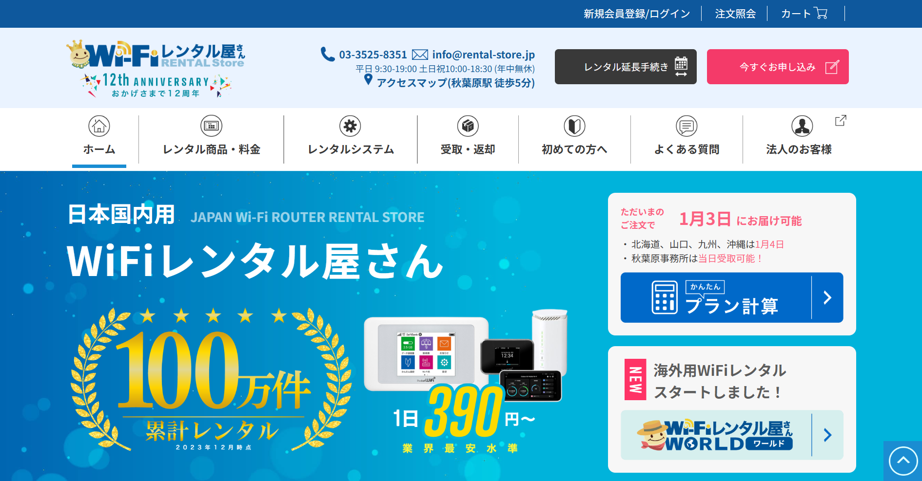 WiFiレンタル屋さんは、短期レンタルでつまずきやすい「返却の手間」をポスト投函で軽くし、日数計算で料金を把握しやすい国内WiFiレンタルサービスです。17時までの注文で当日出荷に対応しており、急ぎの予定にも合わせやすいのが強み。国内一時帰国・引っ越し・訪日といった短期ニーズで、手続きの簡単さとスピード感を重視したい人に向いた選択肢です。